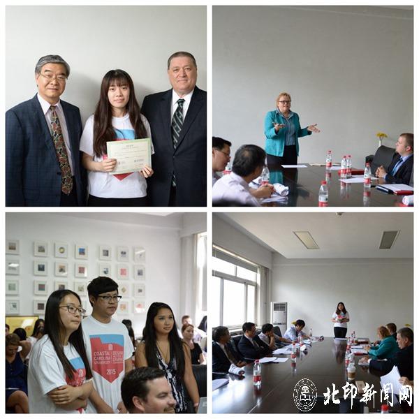 6月12日上午美国卡罗莱纳海岸大学校长David DeCenzo、国际拓展部负责人Darla一行到北京印刷学院访问。DeCenzo校长此行是就两校国际合作交流项目进行深层讨论,并参加下午在设计艺术学院举办的中美国际公开课夏季项目结课仪式,为参与项目的学生颁发结课证书。