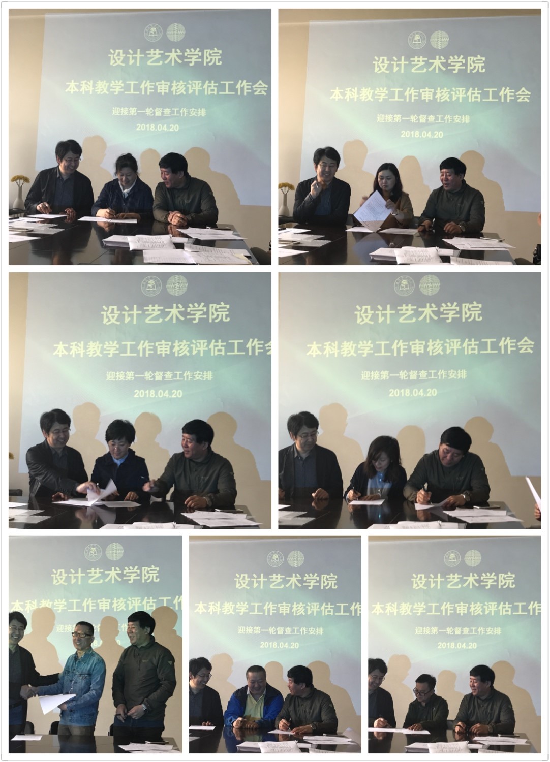 在第二次设艺学院评估工作会上学院领导与各专业负责人、系主任签订了审核评估责任书。