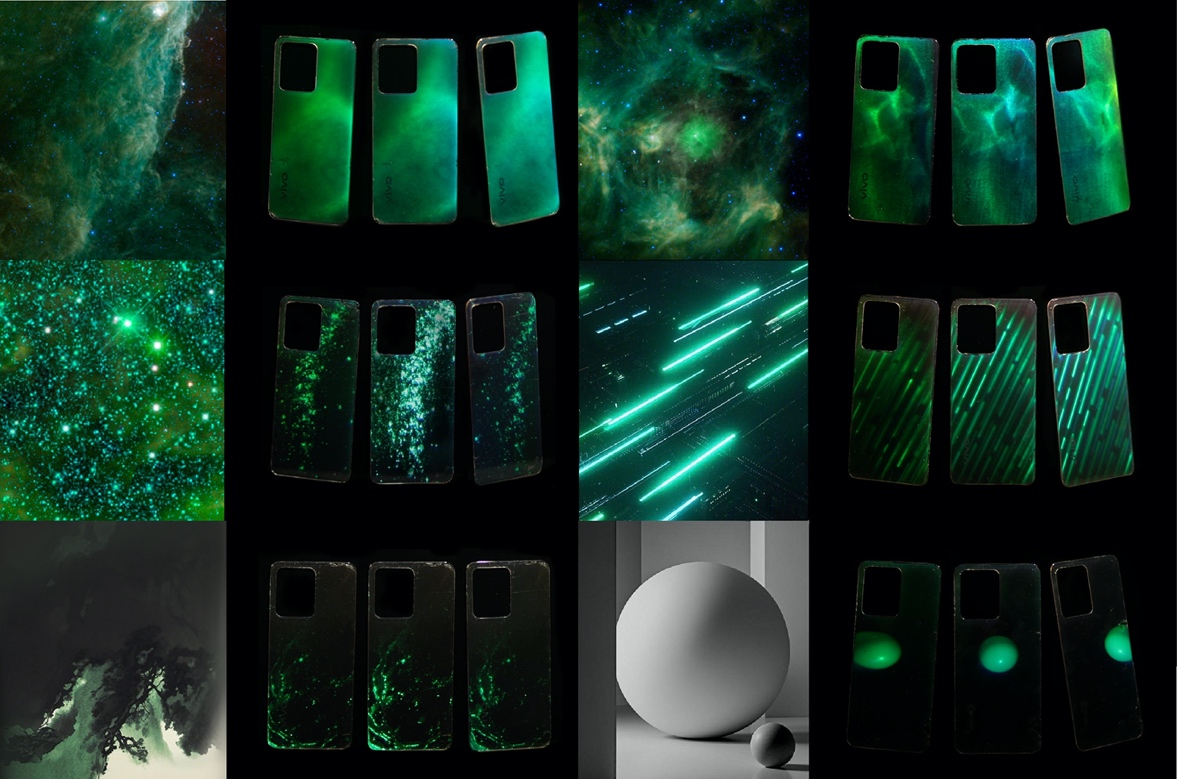 自2024年1月项目启动以来,北京印刷学院全息艺术实验室肩负起全息视觉概念开发的重任,探索了主题选取、概念定位、视觉呈现、影像构成、材质研究、色彩科学、结构逻辑与涂布测试等众多关键环节。团队秉持“创意设计协同创新科技”的核心理念,从全息光学媒介特性入手,构建起一套引领消费电子产品的全息化语言体系,首次将全息设计理念融入手机工业产品的材料策略与视觉系统,拓展了传统CMF(色彩、材料、工艺)框架的设计边界。