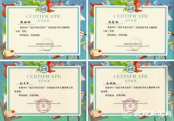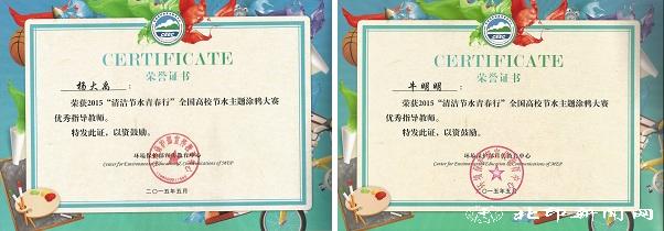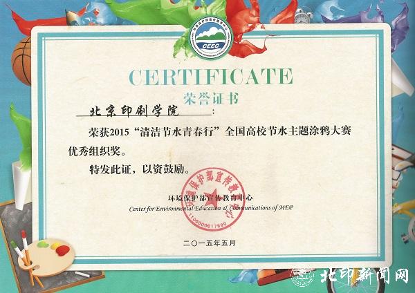 为纪念第23个“世界水日”,唤起大学生节水意识,倡导清洁绿色的生活方式,丰富校园文化,促进我国水资源保护和环境可持续发展,由国家环境保护部主办、中国戏曲学院承办的“清洁节水青春行”全国高校节水主题涂鸦大赛评选结果于6月10日在京揭晓,经过评审会专家组的评选,北京印刷学院荣获优秀组织奖,设计艺术学院绘画专业学生敬丽娇荣获二等奖,尚晨旭、孙奇梦、孙楠翔三位同学获优秀奖,设艺教师杨大禹、牛明明荣获优秀指导教师。