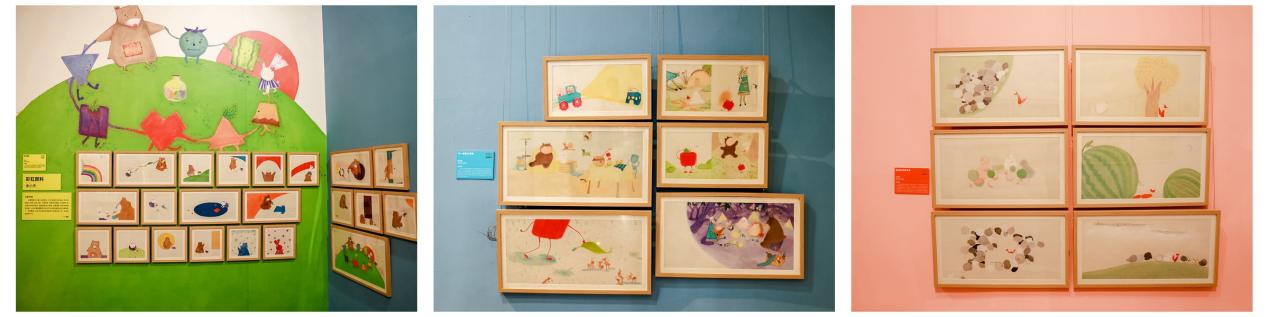 此外,设计艺术学院“出版设计艺术研究中心”师生团队受邀完成此次展览中将由湖南美术出版社出版的57本图画书封面和11本样书的设计工作。封面设计以富有亲和力的、造型饱满的云气为设计元素,将风格纷繁多样的插图作品统一为整体的图画书设计语言,以强化此套丛书的视觉特征。