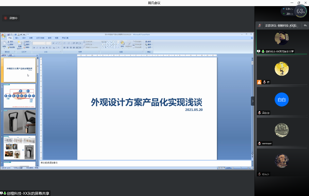 2021年5月21日上午,设计艺术学院工业设计专业邀请佛山市创橙科技有限公司创始人徐贤辉先生举办在线专业讲座,徐贤辉先生为原海信工业设计中心创新所所长。设计艺术学院工业设计专业主任杨莉及教师胡明辉、赵颖、陈乐洋参加了此次活动。