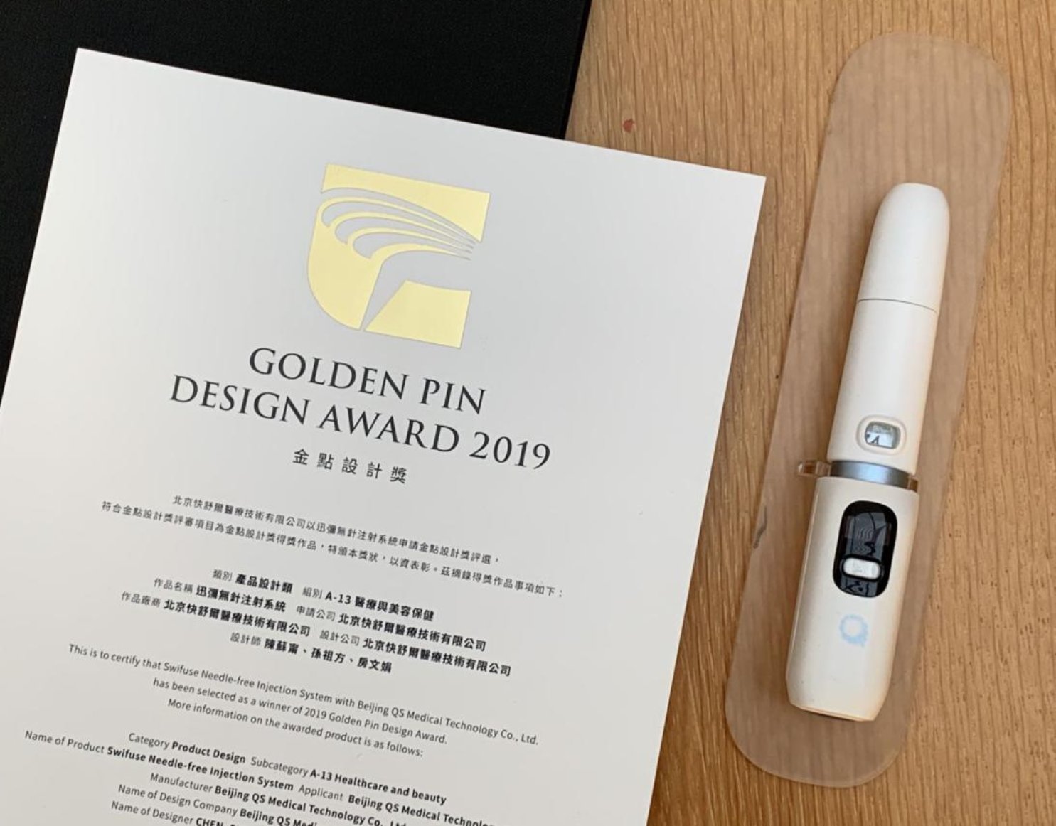 孙祖方参与的迅弹无针注射系统获得金点设计奖