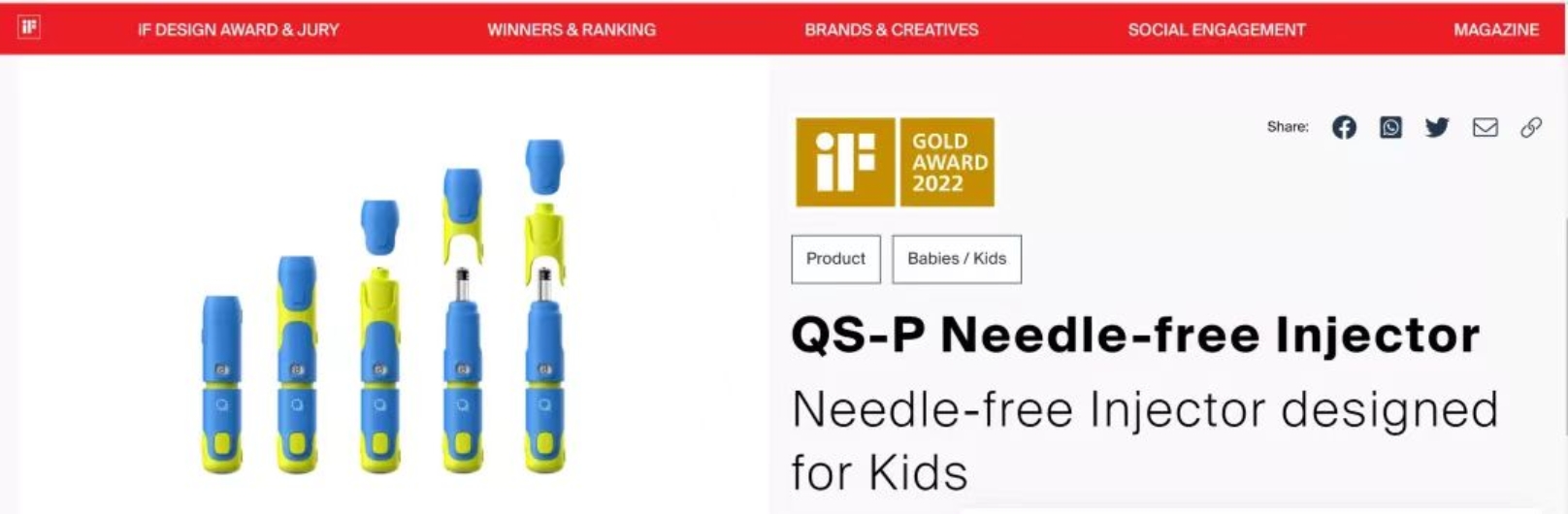 儿童无针注射器获得德国IF金奖