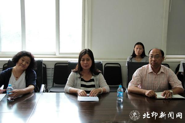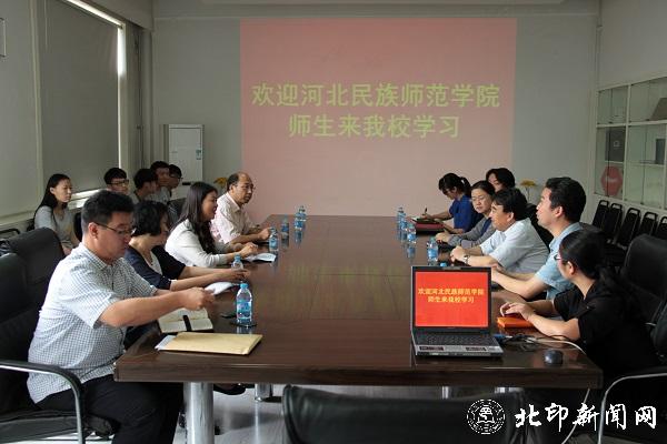9月8日上午,河北民族师范学院副校长赵翠华等一行、教务处处长任建娅、美术系党总支书记李春华、转型办副主任李朝晖一行到北印商谈对口合作。副校长王关义热情接待了赵翠华一行,双方在设计艺术学院会议室就两校在学科建设、人才培养、队伍建设等领域开展合作进行商讨。